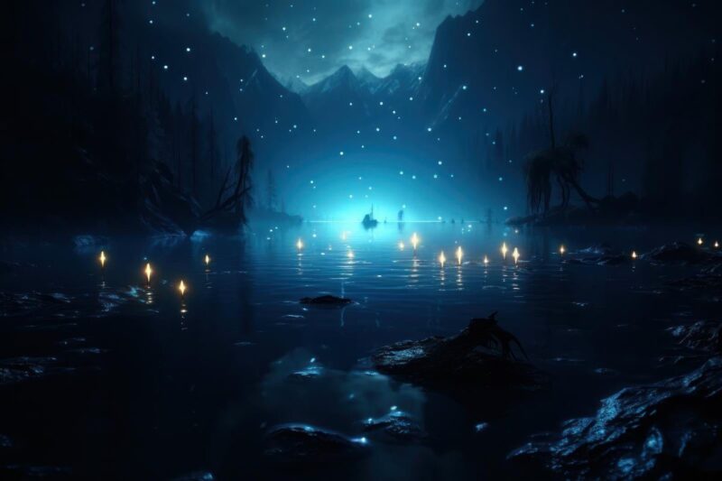 その灯りをそっと湖面へ向ける。