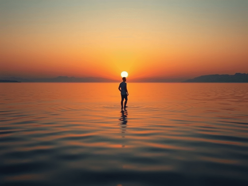 夕暮れの湖に、あなたはひとり立っている。