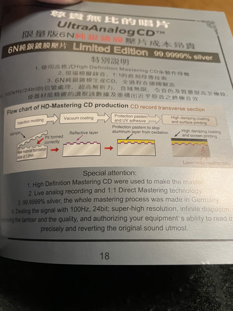 1:1ダイレクトマスタリングテクノロジー、99.9999%シルバー、ドイツでのマスタリングなど