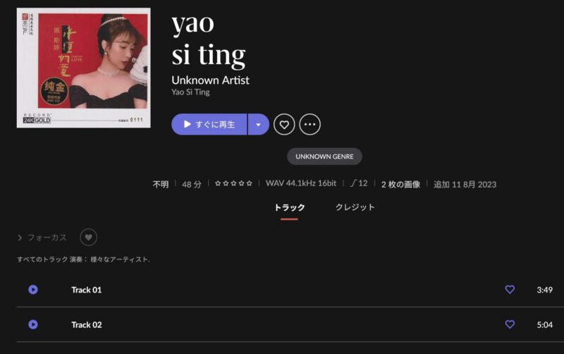 リッピングでもROONでもアルバム・曲目をひろってくれないところがマニアックです。