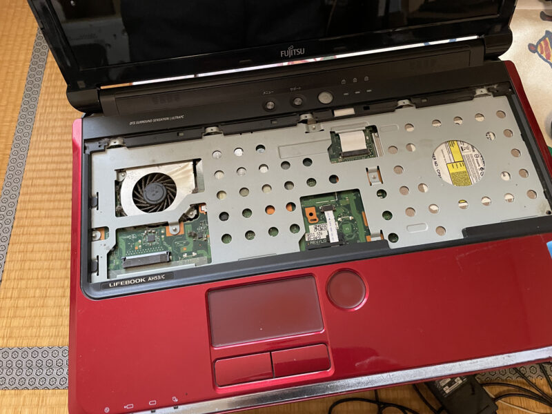 機種によりますが、このノートはプラスチックカバーをはずすとネジが5本とまっているだけで