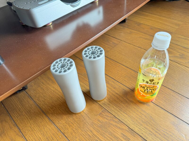通称レンコン、サイズは横のペットボトルと比べるとわかりますが、小さいですが重くしっかりとした作りです。